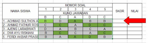 lurus satu kolom sehingga muncul skor yang sesuai jumlah jawaban yang benar